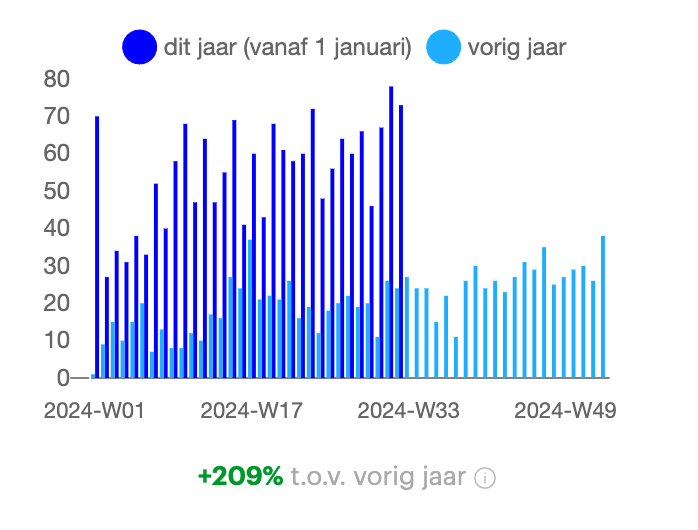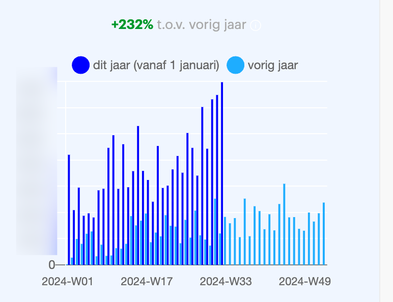Zie onder een indicatie hoe 2024 presteert t.o.v. 2023. Een groei van 232%.